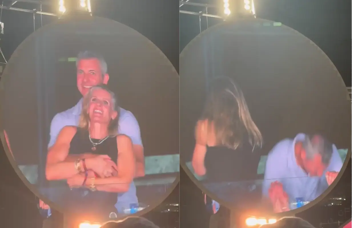 It was a crystal-clear moment of shock and mortification for us all to witness in plain sight. The canoodling couple were clearly not wanting anybody to see then getting cosy on camera at the gig near Boston, Massachusetts.